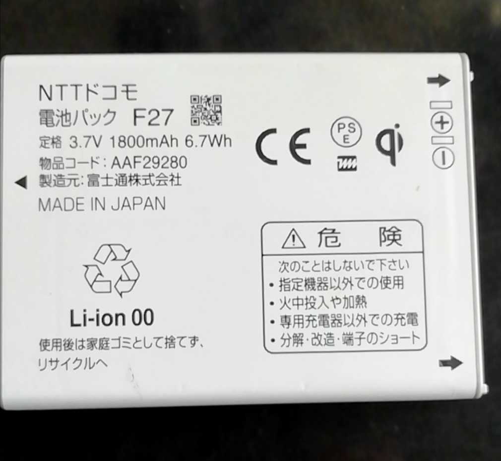 > 【中古】NTTドコモF27(F25互換)純正電池パックバッテリー【充電確認済】対応機種(参考)F-10D/F-12D/T-02D