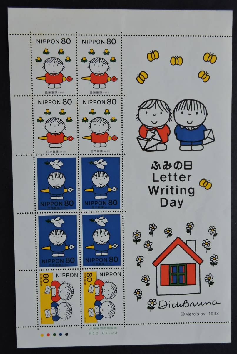 - 日本切手ー未使用 平成10年 ふみの日 80円切手10枚 1シート