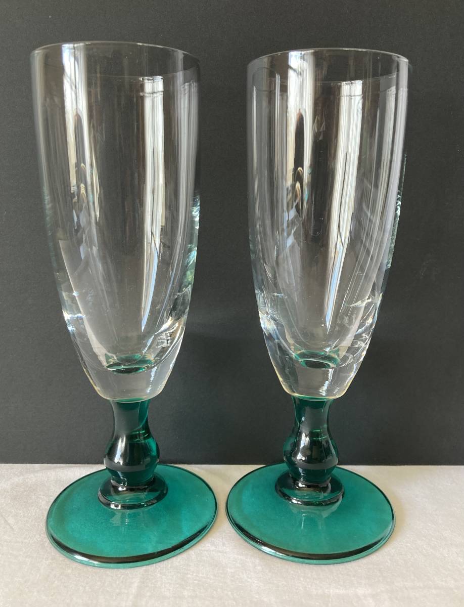 - シャンペングラス:フルートグラス エメラルドグリーン ペア
