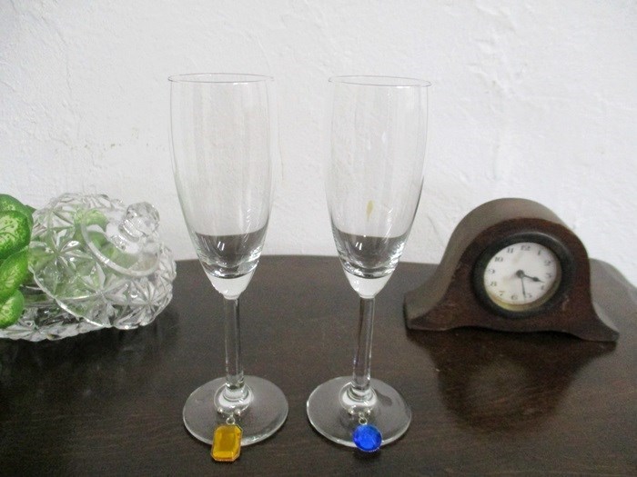 - ペア シャンパングラス フルート型 アルコールグラス 2客 飾り付き イギリス 英国 キッチン雑貨 glass 1850e