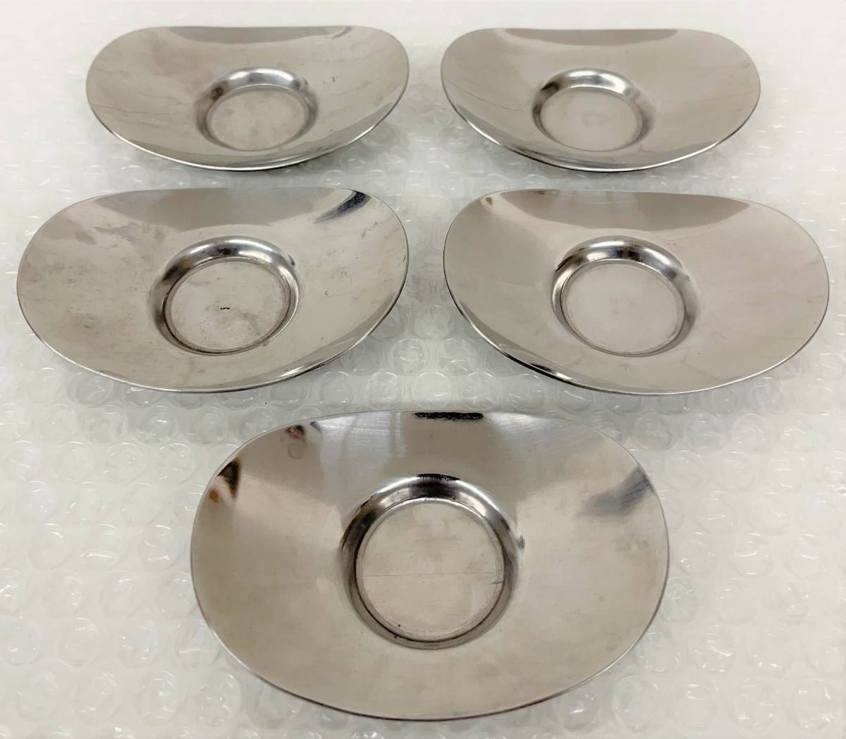- 伝統工芸 工芸品 金属工芸 工芸美術 *秀峯造 茶托 5客 揃 セット 楕円系 丸型 *茶道具 茶道 茶器 緑茶 煎茶 日本 JAPAN 88×62×20mm