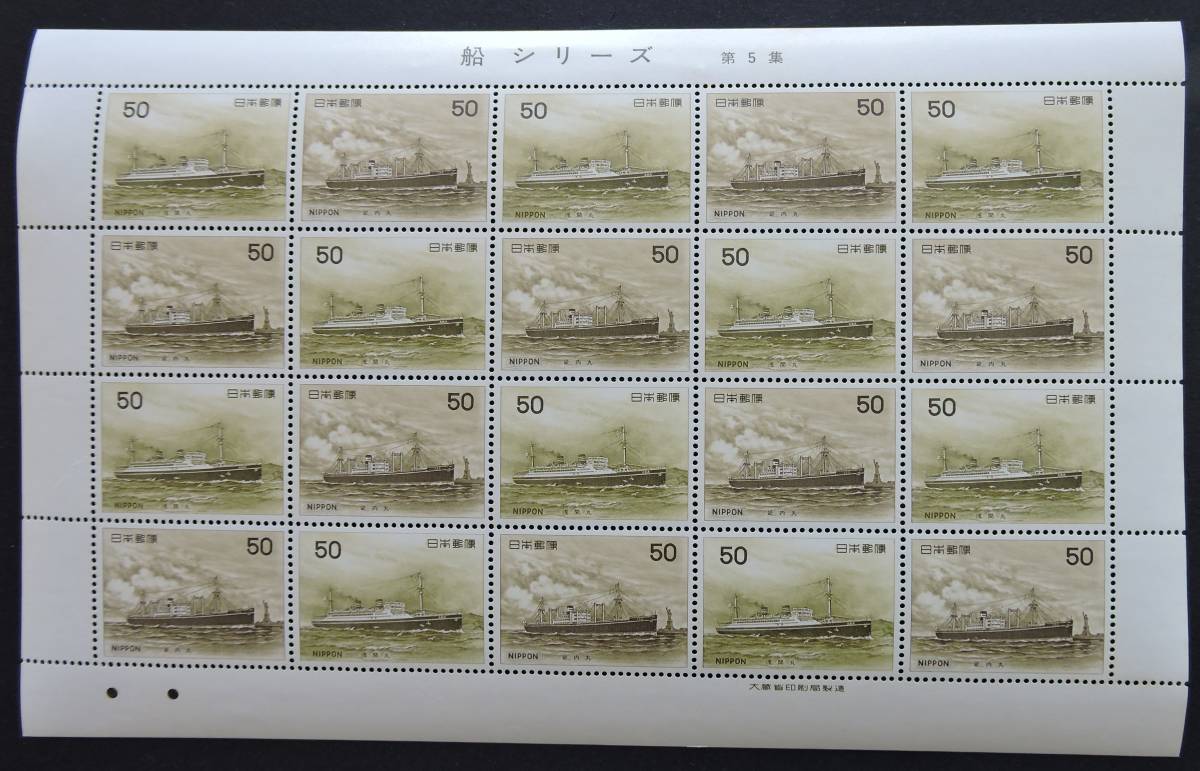 - 日本切手ー未使用1976年船シリーズ第5集50円*10ペア(20枚) 全面シート 1シート