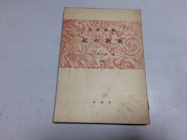 - ●P526●新秋の記●養徳叢書●佐藤春夫●養徳社●昭和21年発行●旅びと杏の実をくれる娘車窓残月の記秋立つ窓展く写生旅行●即決