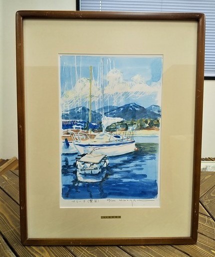 - 100★松本 明也 「マリーナ 繋畄」 手彩色リトグラフ 8/100 三軌会 作者サイン 真作保証★