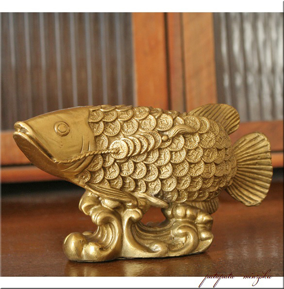 - アロワナ 真鍮 オブジェ 龍魚 置物 オブジェ パタミン 雑貨 風水 インテリア
