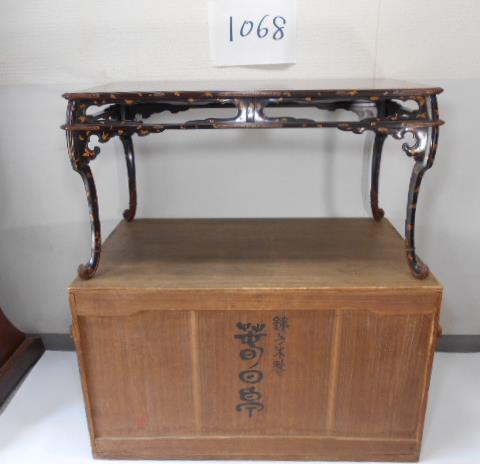 - 大雅堂1068「真作」皇室買い上げ作家 池田惠斎作 春日卓 共箱 美品 花虫鳥300余柘植象嵌 卓台 茶道具茶席道具 越前蔵うぶ出し