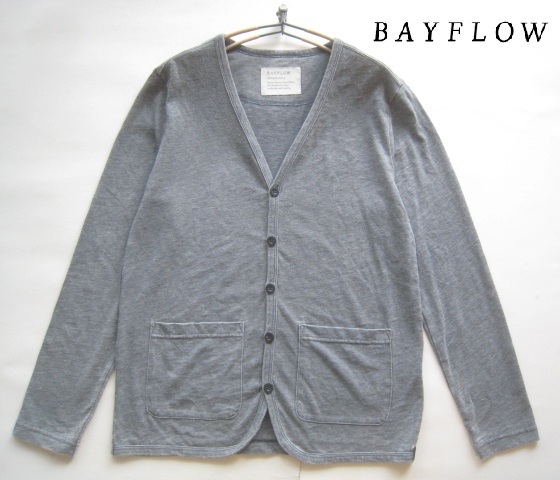 > 高級!!ベイフロー BAYFLOW*ポリコットンカットソーカーディガン 2 実寸S グレー 海上がりに着たい