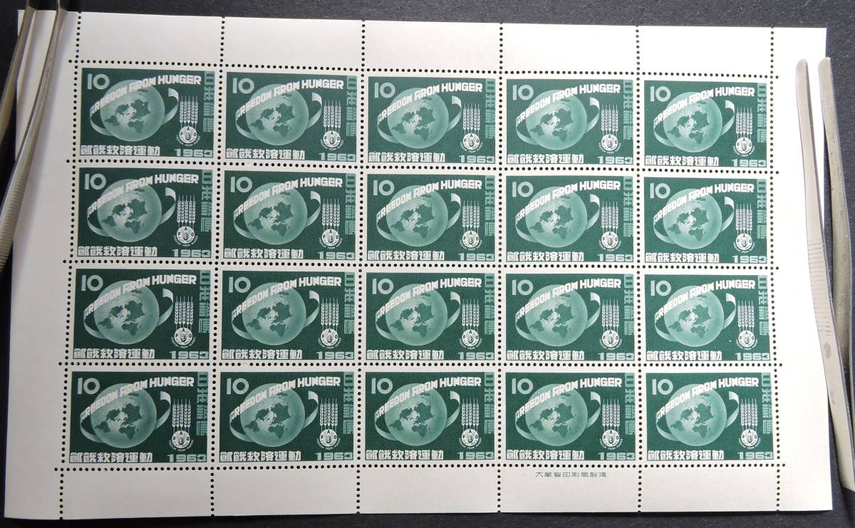 - 日本切手ー未使用1963飢餓救済運動10円*20枚 全面シート 1シート