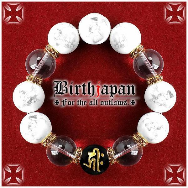 - 18mm ロンデル×ハウライト 水晶数珠ブレスレット オラオラ系
