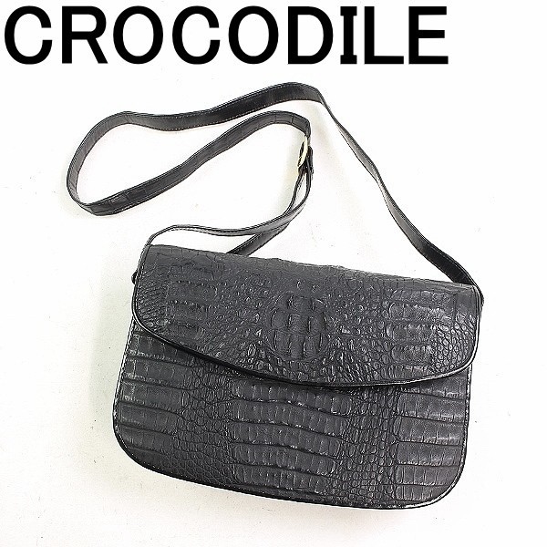 - ◆ELGA/エルガ カイマン クロコダイル ワニ革 レザー ショルダー バッグ ブラック系
