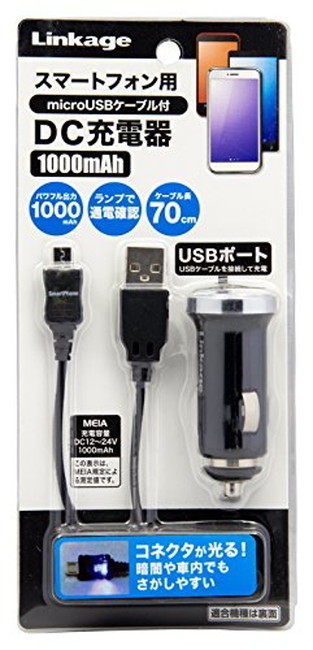 - Linkage microUSBケーブル付シガーソケット充電器 1A ブラック SO-302UC