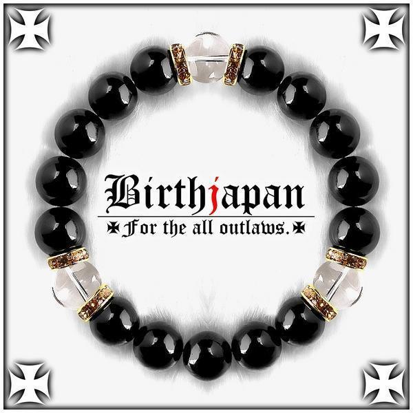 - 12mm/ロンデル×オニキス/水晶数珠ブレスレットヤクザオラオラ系