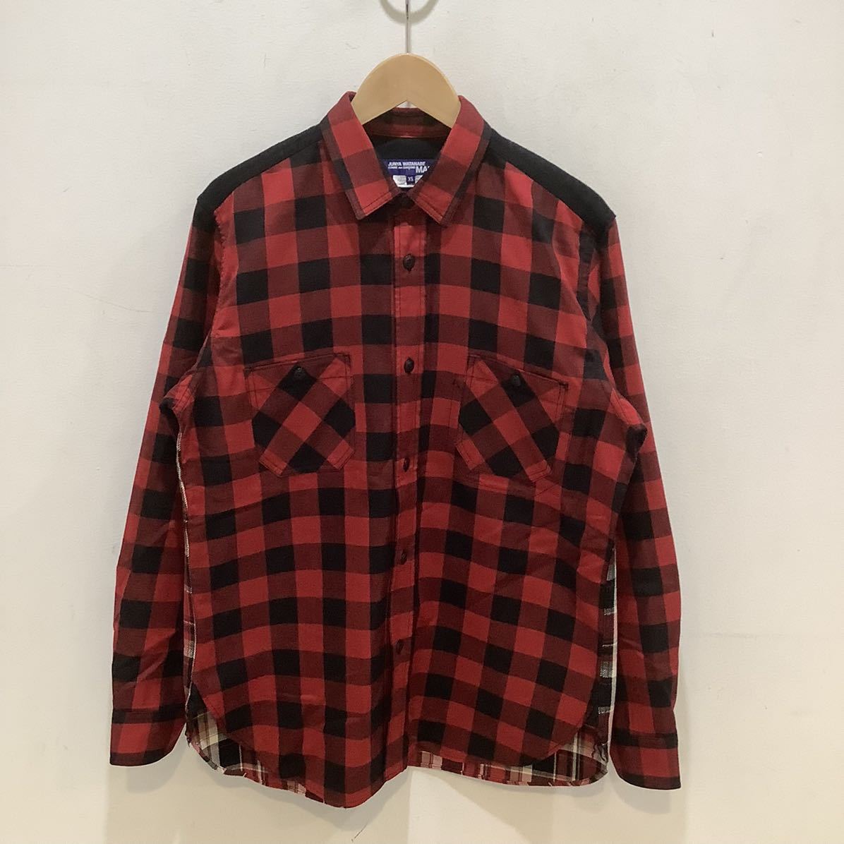 > JUNYA WATANABE COMME des GARCONS コムデギャルソン WH-B012 2021A/W エルボーパッチ チェック ネルシャツ レッド サイズXS 547118