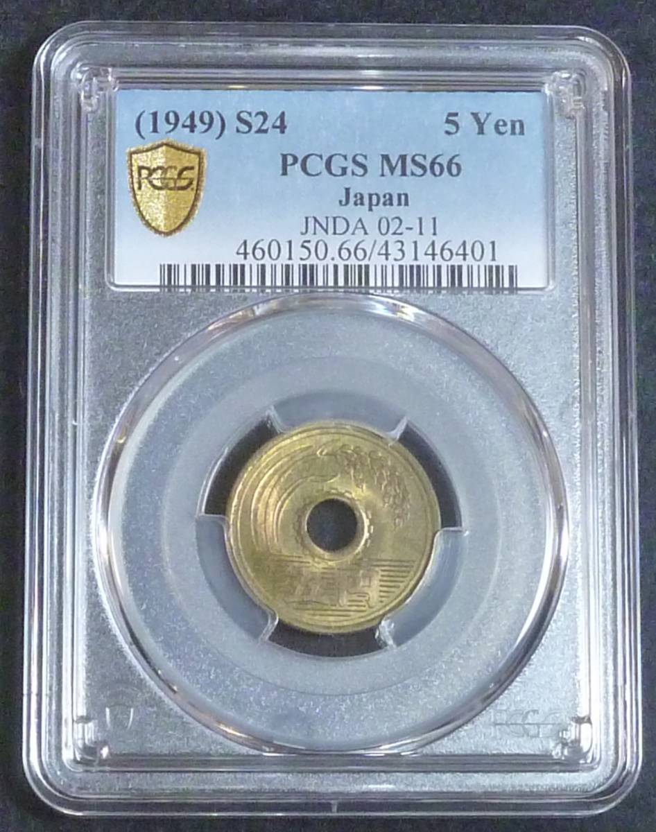 - ☆★5円黄銅貨 S24年 PCGS-MS66-2★☆