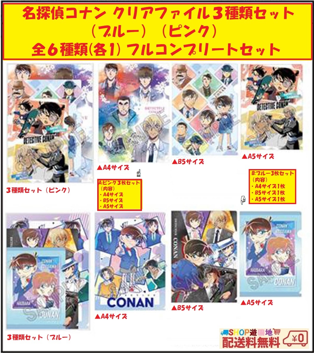 - 名探偵コナン クリアファイル 3P セット ピンクセット ブルーセット 合計 全6種類 セット