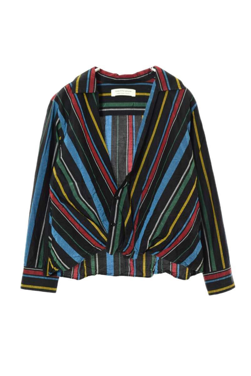 > 美品 beautiful people マルチストライプ クロスオーバーシャツ 34 マルチ ビューティフルピープル KL4CKL2A19