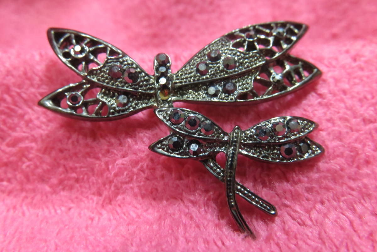 - W1336 ブローチ とんぼ ラインストーン アンティーク調 石落ち