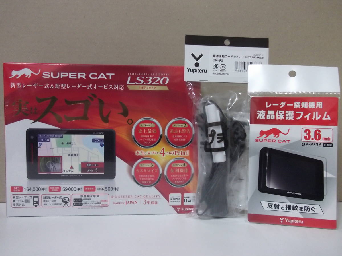 > 【新品SET・在庫有・2021年モデル】YupiteruユピテルLS320+OP-9U+液晶フィルムSET 新型光オービス(レーザー式)対応 3.6型GPS内蔵レーダー