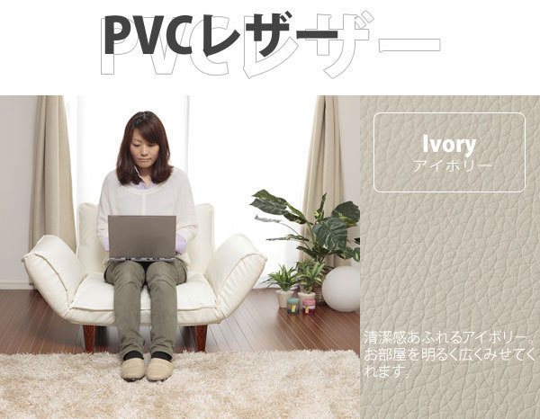 > 【送料無料】リクライニング1人掛けソファー/合成皮革アイボリー