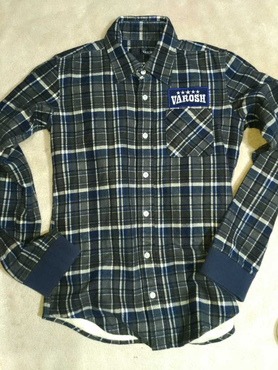 - Varosh ヴァロッシュ ボックスロゴ 刺繍 チェック 長袖 シャツ サイズS 紺系 メンズ 日本製