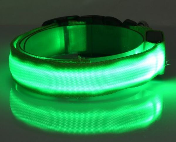 > 光る!首輪【S 緑】LEDライトが明るく安全!小型犬 夜間のお散歩に♪ 安心 防犯 犬 猫 ペット 【グリーン/S 】
