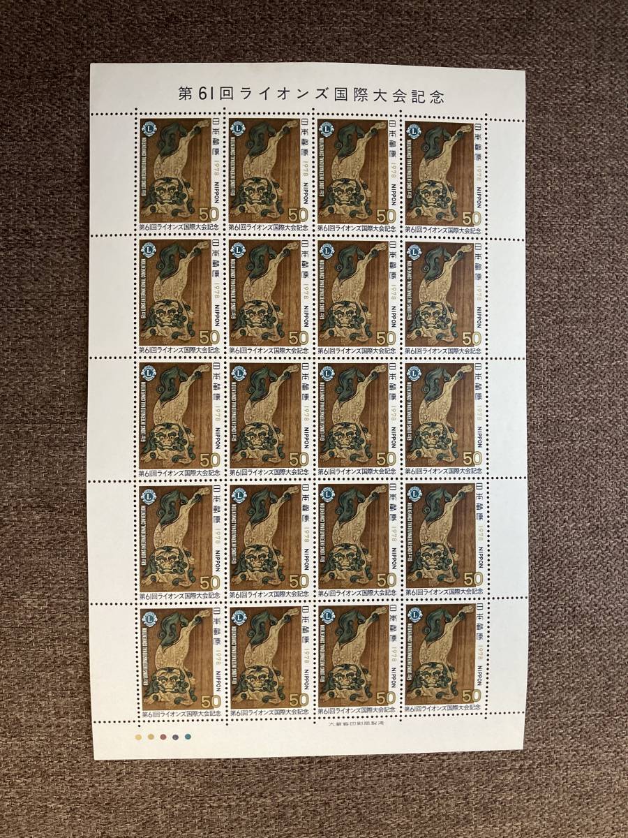 - ★未使用 第61回 ライオンズ国際大会記念 唐獅子 マーク 昭和53年 1978年 切手シート 50円 20枚 日本郵便 大蔵省印刷局製造