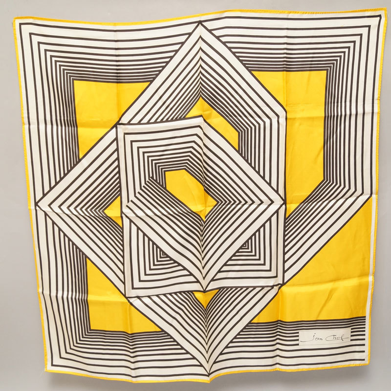 - yo31-Jan chol ジャンショーレ スカーフ イエロー ブラウン 絹100% レトロ