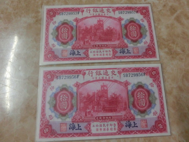 - ★ 上海 交通銀行 拾圓 1914年 未使用・連番 2枚セット ★ No.400