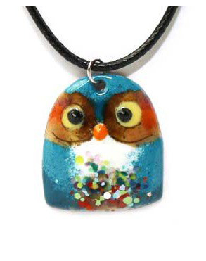 - かわいいお守り「ふくろう」ペンダント(七宝焼き)ブルー
