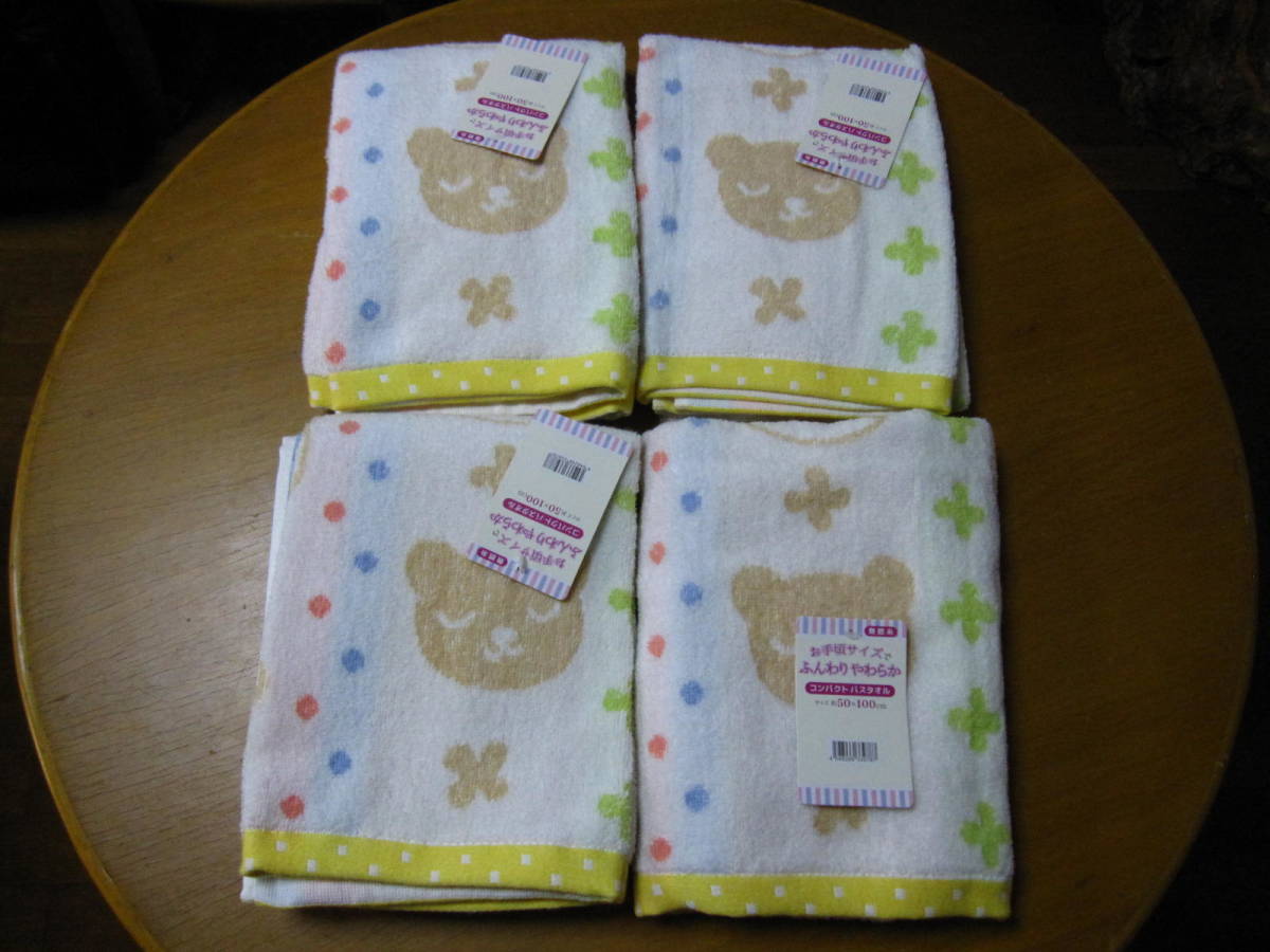 - バスタオル 新品 4枚 セット クマ ドット 四つ葉 動物 アニマル 模様 格安 秋 冬 男女 兼用 子供 タオルケット 綿 可愛 お洒落 家庭 祝い