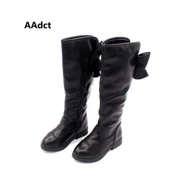 - 冬の子供の靴王女マーティンブーツオーバーザ膝ブーツ革_黒_23cm