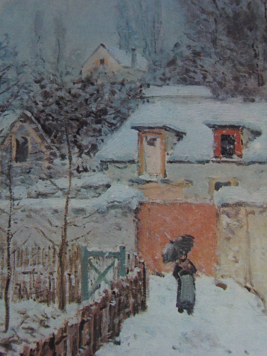 - アルフレッド・シスレー、【雪のルーヴシエンヌの庭】、希少な額装用画集より、状態良好、新品額装付、Alfred Sisley