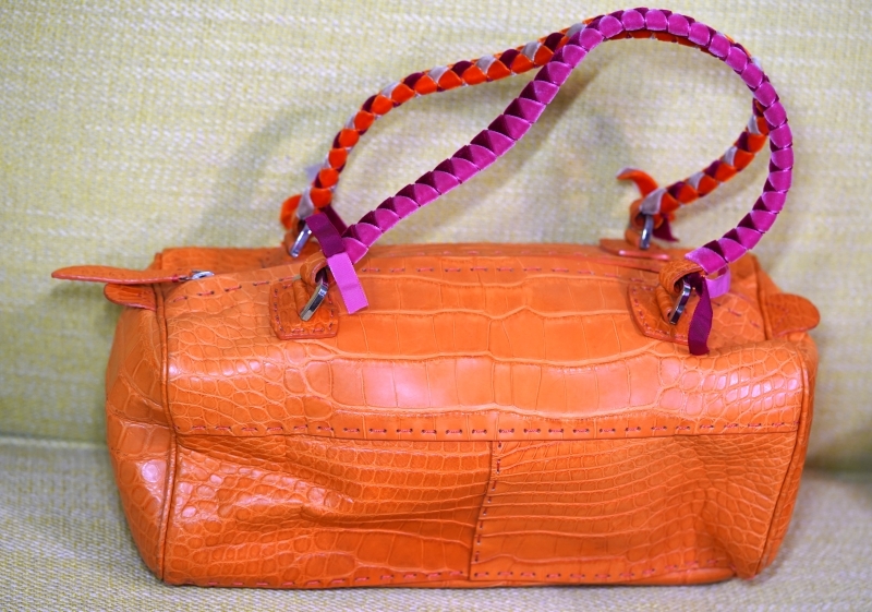 - ソフトマットクロコ 2WAY ハンド 肩掛けショルダーバッグ クロコダイル オレンジ イタリア製 極美品 malo マロ
