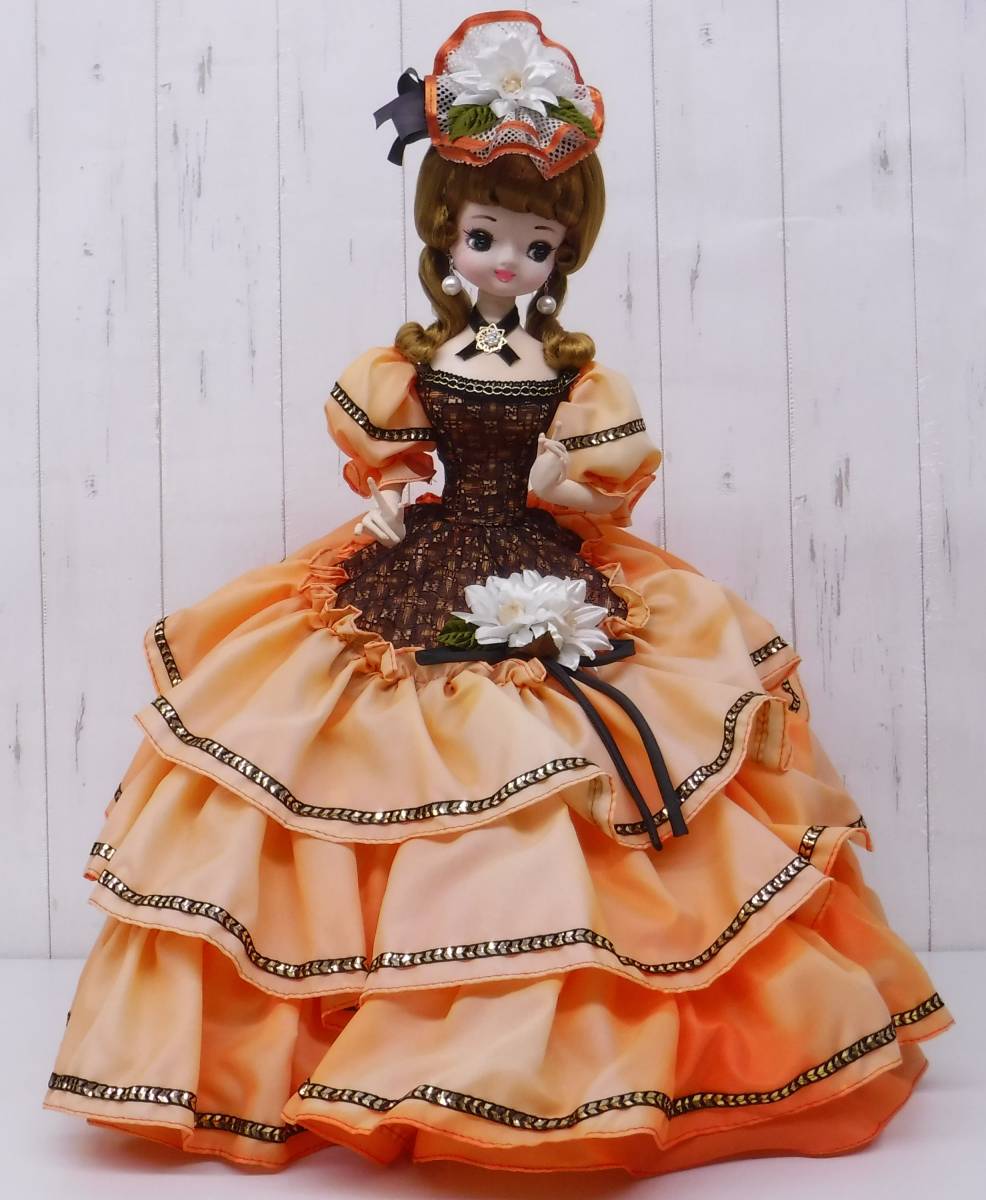- 昭和レトロ 当時物 *レトロポーズ人形 *サクラ人形 サクラドール *オレンジ系レースドレス *60cm *レトロポップ アンティーク