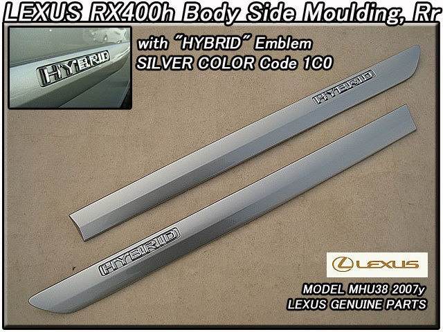 > ハリアーU38ハイブリッド/LEXUS/レクサスRX400h純正USサイドモール-リアドア左右(HYBRIDエンブレム付)銀色1C0/USDM北米仕様U30ドアモール銀