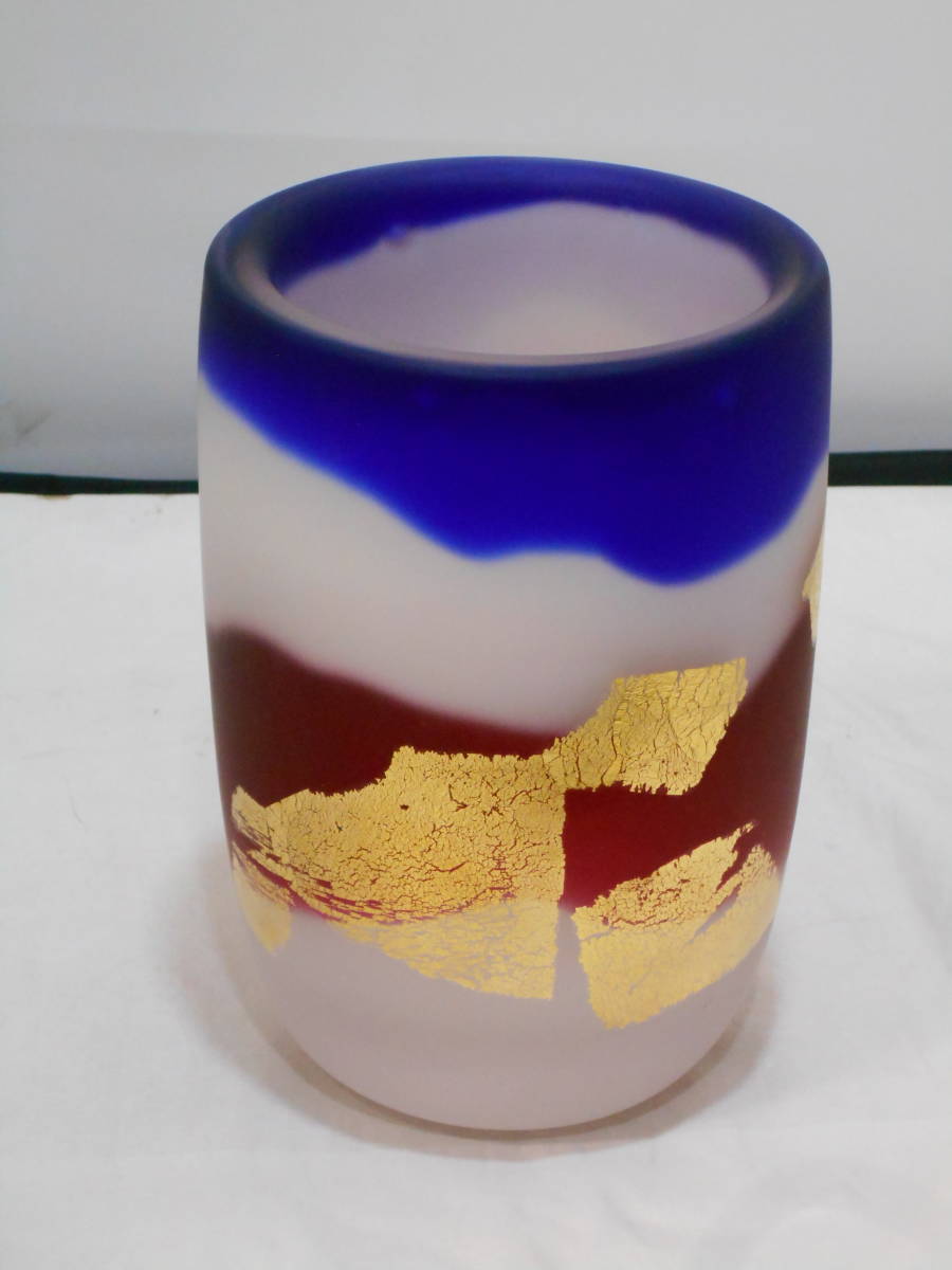 - 花を活けよう 藤田喬平作 手吹き 金彩 花瓶 サイン入り 共箱付 未使用保管品/FLOWER BASE
