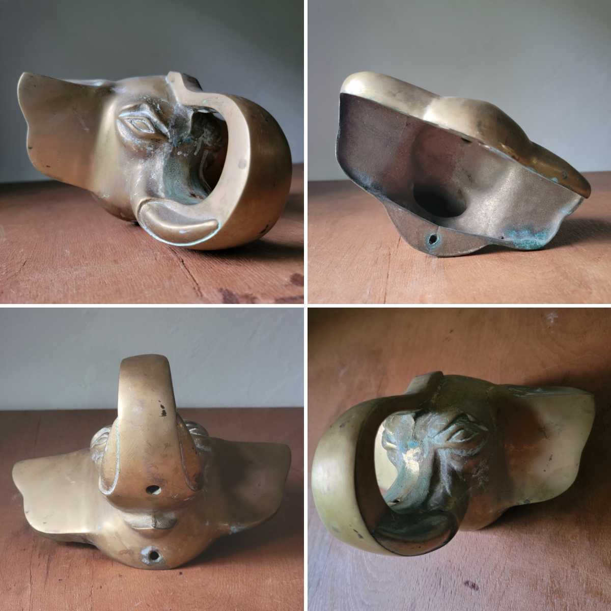 - ヴィンテージ 真鍮 エレファント 装飾 ウォールデコ ハンガーフック インテリア アンティーク ヨーロッパ 象 オブジェ (辰)