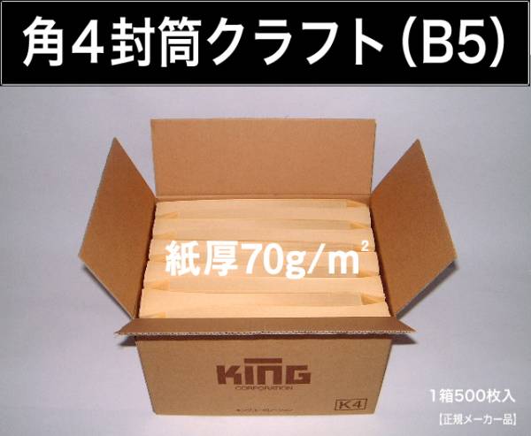 - 角4封筒《紙厚70g/m2 B5 クラフト 茶封筒 角形4号》1000枚 事務用封筒 角型4号 B5サイズ対応 キングコーポレーション