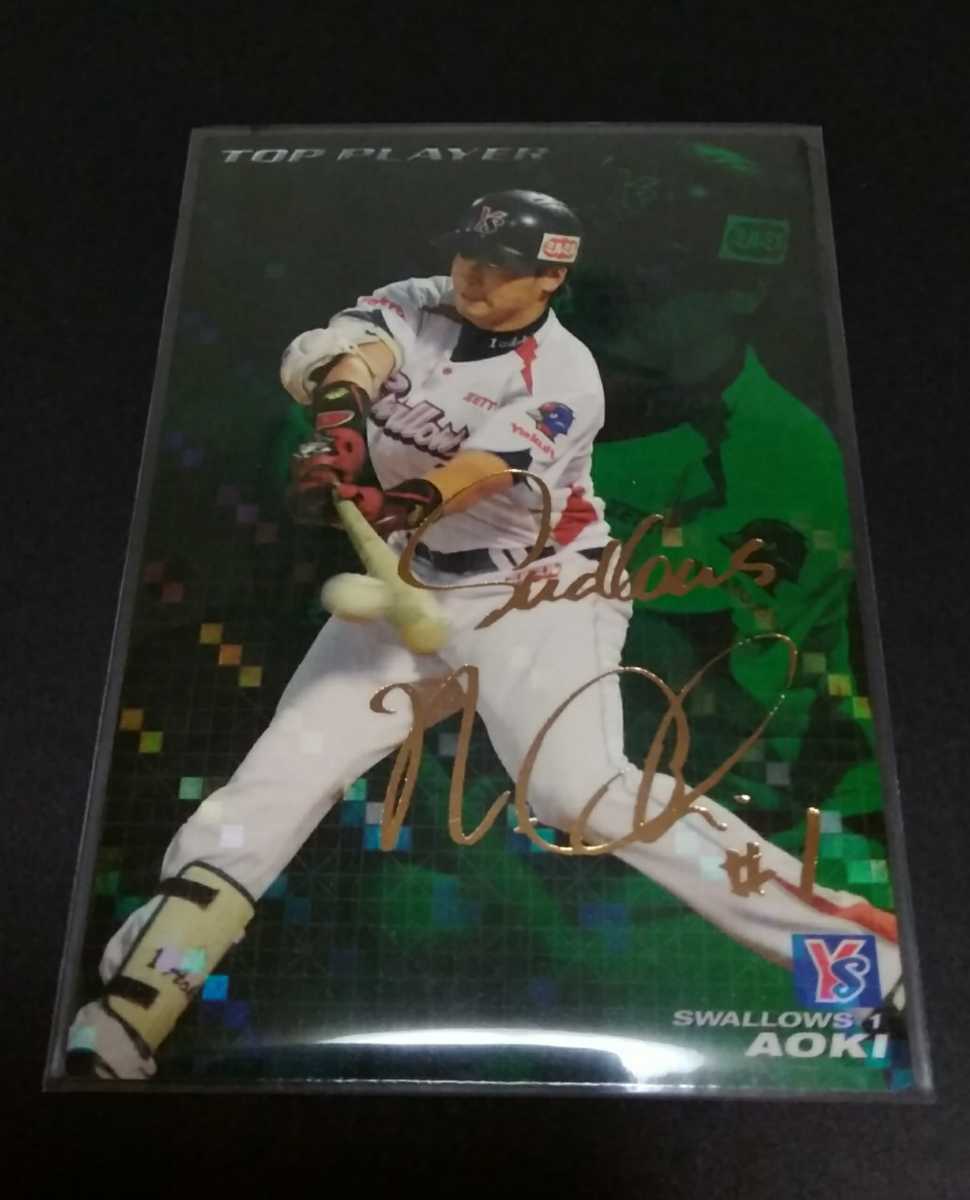 - 2011年カルビー 第1弾 青木宣親(ヤクルト)金箔サイン入りTOP PLAYERカード。No,TP-20。