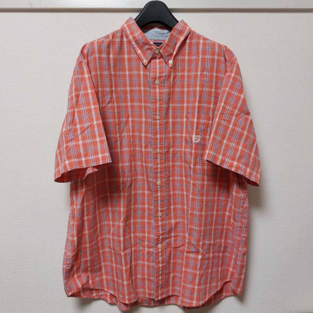 - CHAPS ラルフローレン ボタンダウン チェック オレンジ 半袖 シャツ XXL オーバーサイズ 04F2306