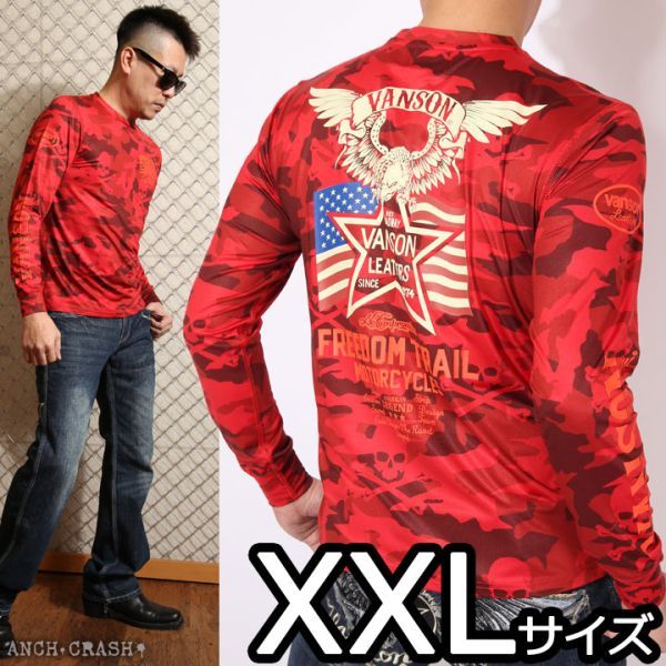 - VANSON ドライ長袖Tシャツ ACVL-905 レッドカモ【XXLサイズ】バンソン 当店別注 吸汗速乾 抗菌防臭 UVカット バイカー