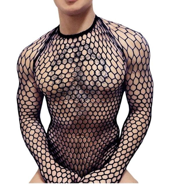 - 送料無料 網メッシュ 長袖シャツ カットソー インナーシャツ メンズ トップス ドライメッシュ フィッシュ H0075 黒