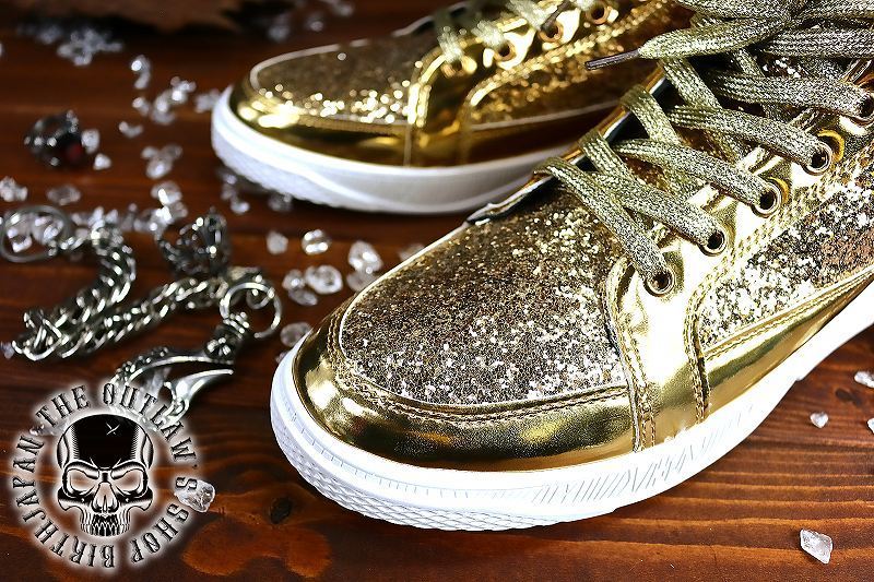 - ラメ入り ハイカットスニーカー 金 靴 メンズ シューズ ファッション オラオラ系 悪羅 HIPHOP B系 お兄系 メンナク ホスト 派手 107