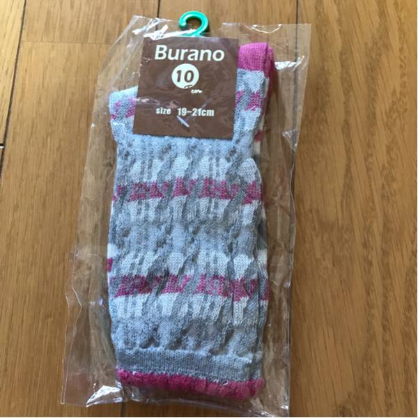 - 新品未使用 Burano 靴下 19~21cm ピンク×グレー