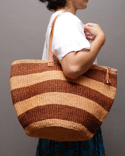 - サイザルバッグ 12インチ ボーダーカラー No.2 アフリカ ケニア かごバッグ
