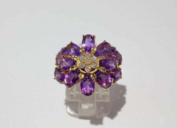 - K18 YG 6.5g アメジスト 12個 ダイヤ 0.14ct リング 10号
