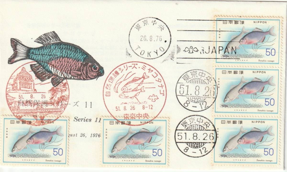 - FDC 1976年 自然保護シリーズ イトヨ 5貼 JPS
