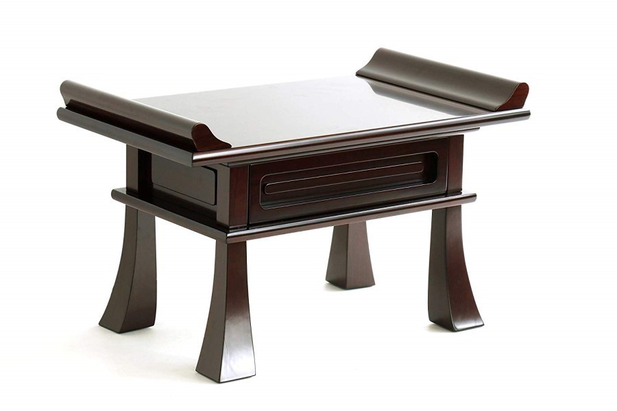 - 経机 ■ 唐木風 紫檀調 ■ 便利な引出付 ■ 供物台 16号 小型 モダン ミニ ペット 仏壇 法事