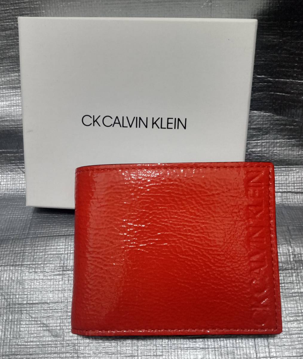 > ○新品 CALVIN KLEIN リンクルパテント 本革 2つ折り財布 定価15,400円 オレンジ カルバンクライン ウォレット 牛革 レザー