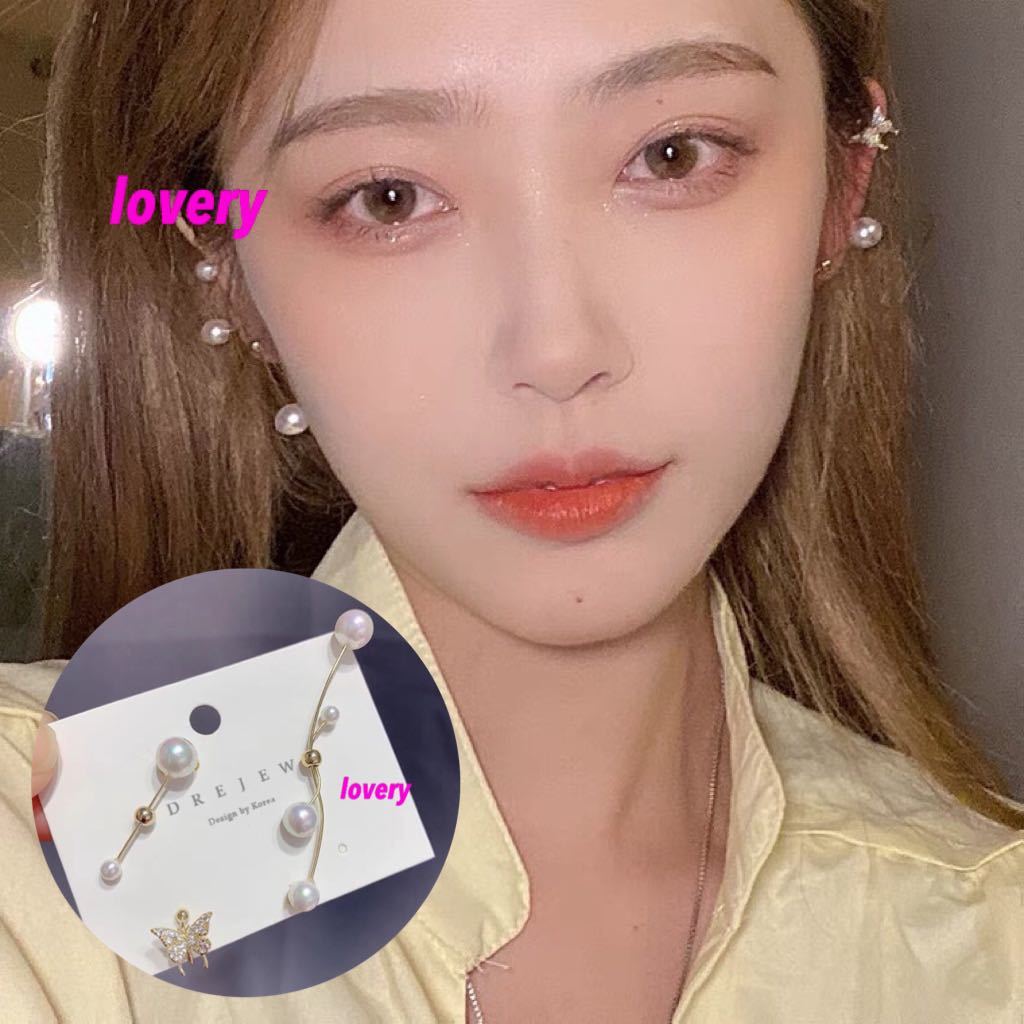 > 韓国でも人気☆アシンメトリーパールピアス 蝶イヤーカフ パールピアス イヤーカフ アシンメトリー ピアス ゴールドピアス